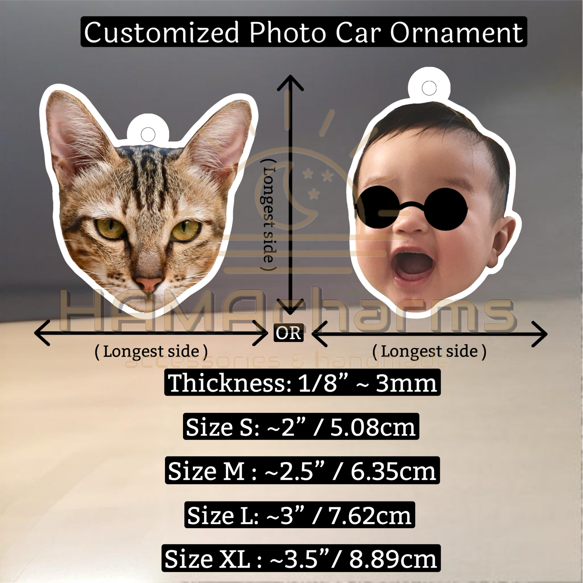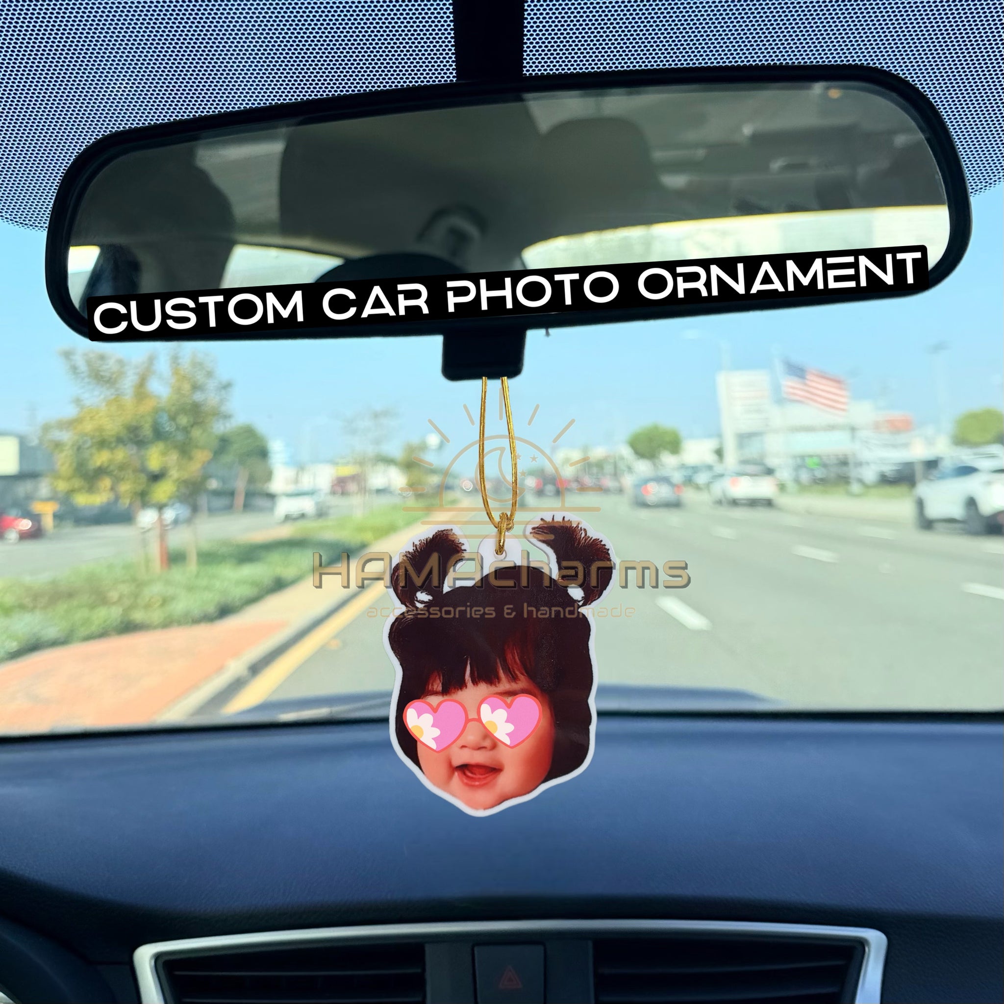 Custom Acrylic Car Photo Ornament: Photo Rear View Mirror Car Hanger, Cut Out Face Photo, Dog,Cat, Pet, Your Portrait, Car Hanger Decoration