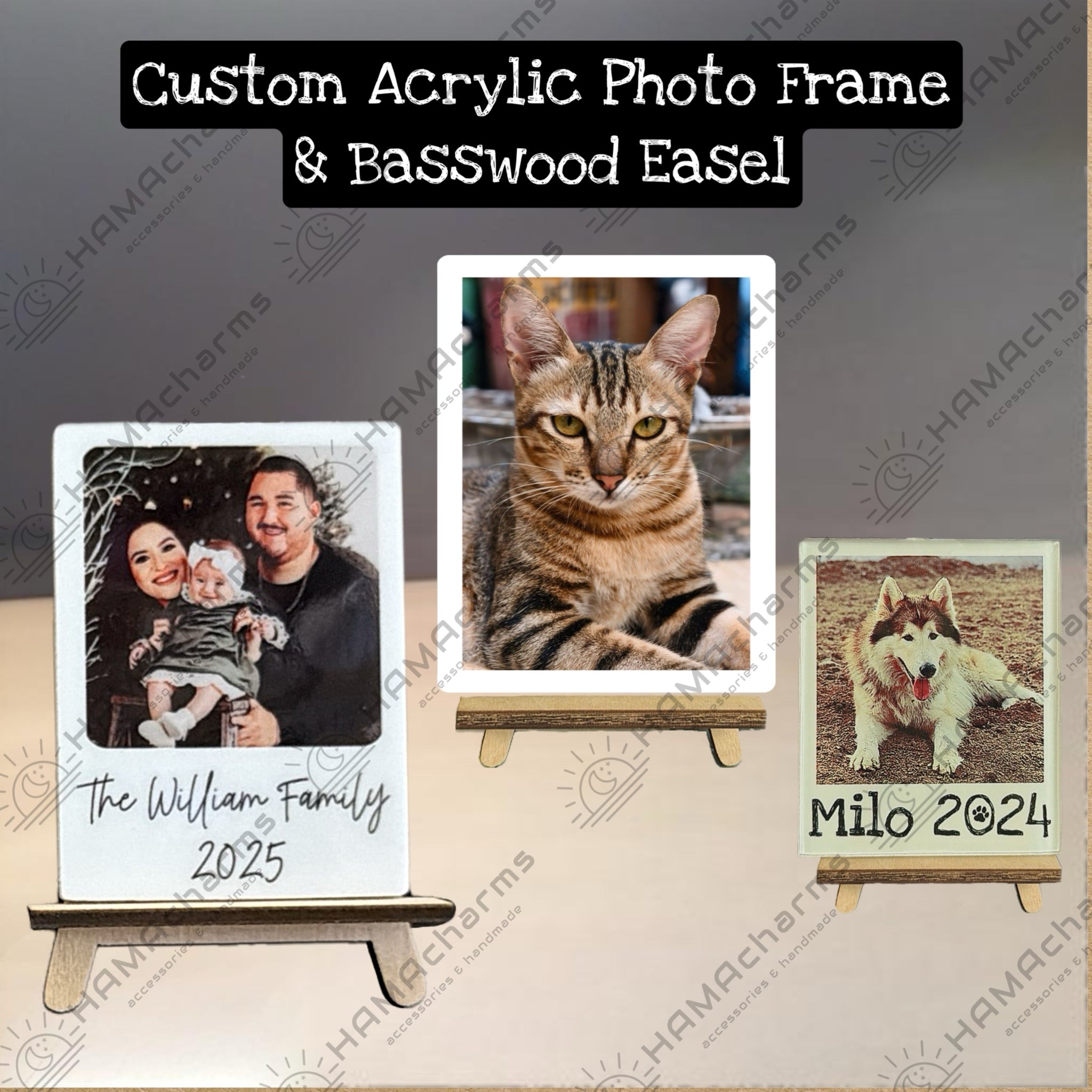 Custom Mini Acrylic Photo Frame With Basswood Easel, Family Photo Frame Standee, Photo Stand, Portrait, Dog, Cat Polaroid Photo Standee